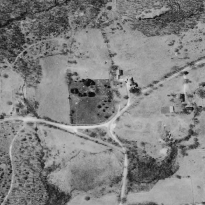 According to volume III of the Lyme Records, a total of 190 acres was granted to the Society in the interest of supporting the Church's ministry. Between these two lots, one containing 90 acres and the other 100, lay Society Road, so-named for its relation to the Second Ecclesiastical Society. Additionally, an acre was given for the founding of a church graveyard. This graveyard is now referred to as the "Old Stone Church Cemetery" and may be seen in the aerial photograph below.